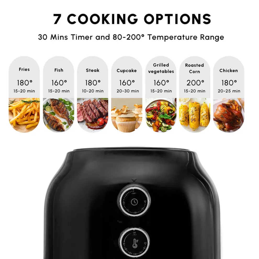 Take control of your cooking with the convenience of a 30-minute timer and adjustable temperature settings up to 200°C. Achieve perfect results every time by customizing the cooking parameters to suit your recipes. You can attain flawless outcomes across various cooking methods, be it heating, baking, or frying, as you fine-tune the cooking parameters to harmonize perfectly with your diverse recipes.