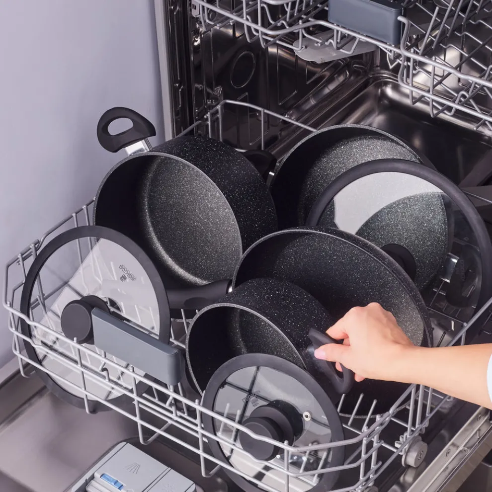 The non-stick surface ensures food doesn’t stick or burn, even when cooking at higher temperatures, helping you achieve better results with less oil. Its granite-effect finish not only adds a contemporary look to your kitchen but also offers long-lasting performance, resisting scratches and stains over time.Perfect for both novice cooks and seasoned chefs, the Nebula set brings practicality and style together. Whether you’re simmering sauces, sautéing vegetables, or frying eggs, each piece delivers consistent heat for delicious, evenly cooked meals.