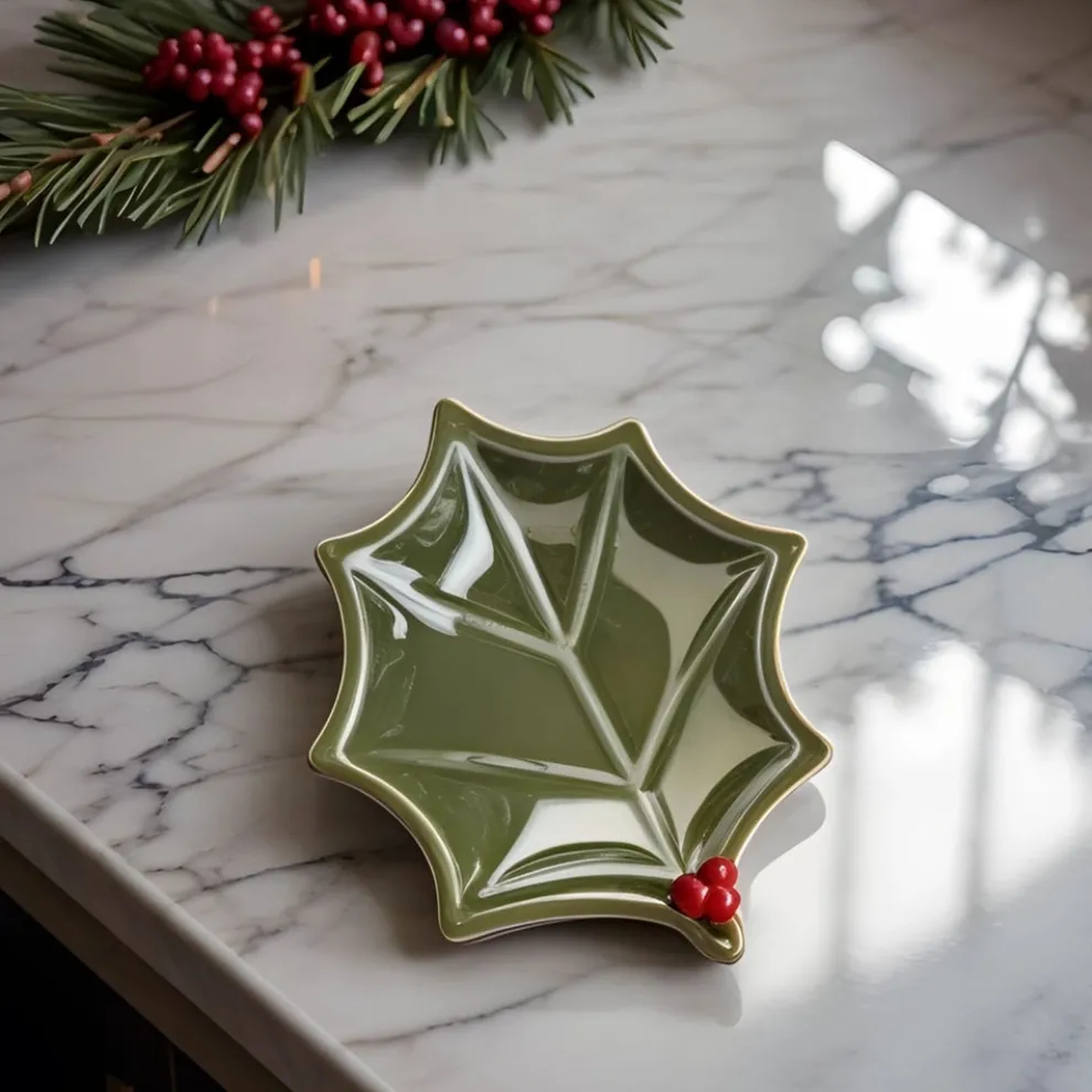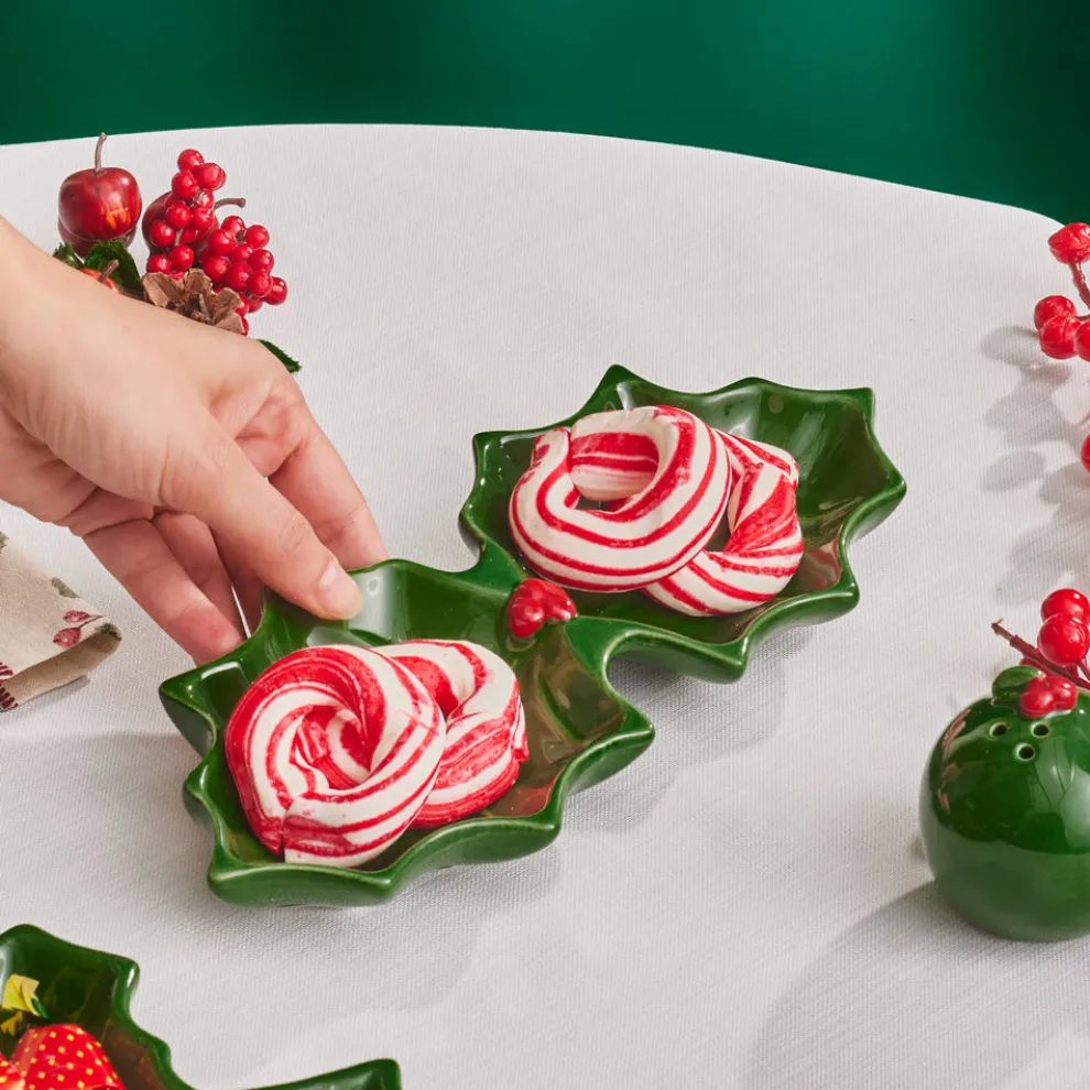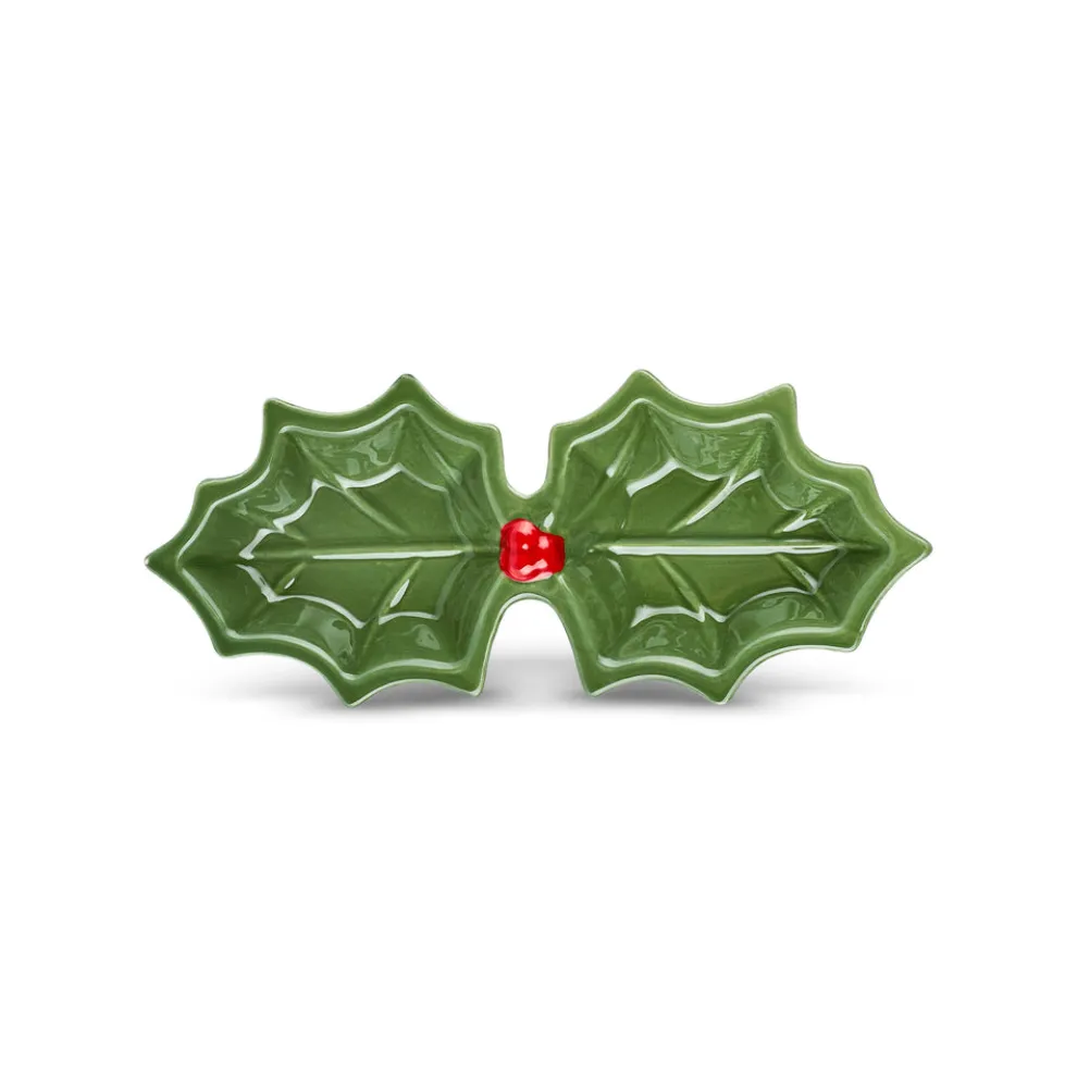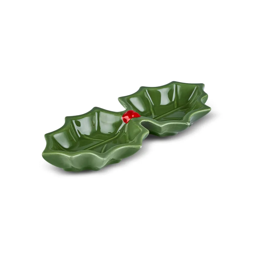 Karaca New Year Butcher’s Broom 2-Section Snack Bowl, 18cm, Green