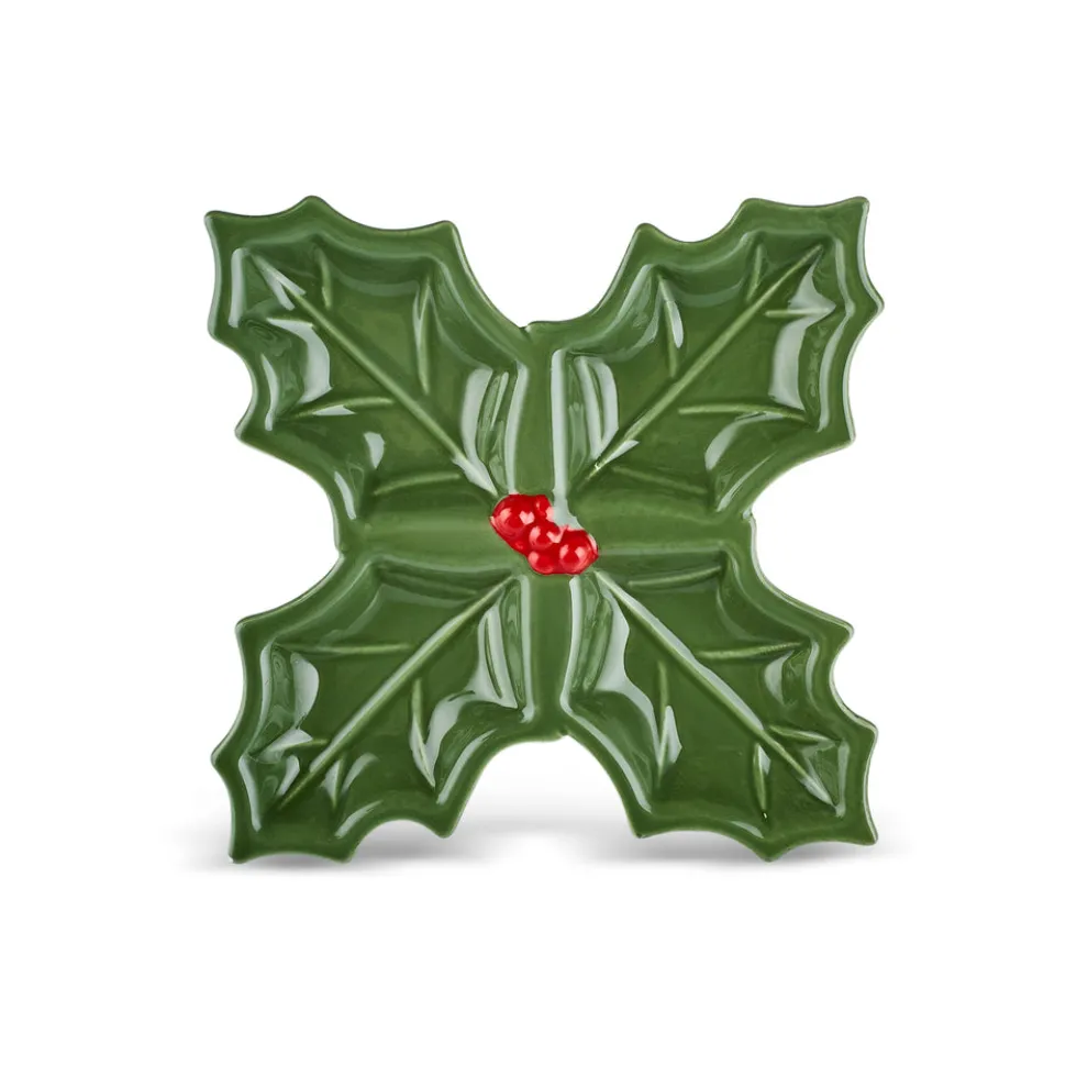 Karaca New Year Butcher’s Broom 4-Section Snack Bowl, 18cm, Green