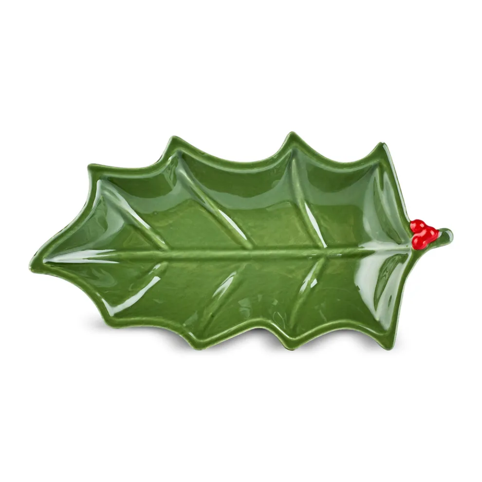 Karaca New Year Christmas Butcher’s Broom Serving Platter, 22cm, Green