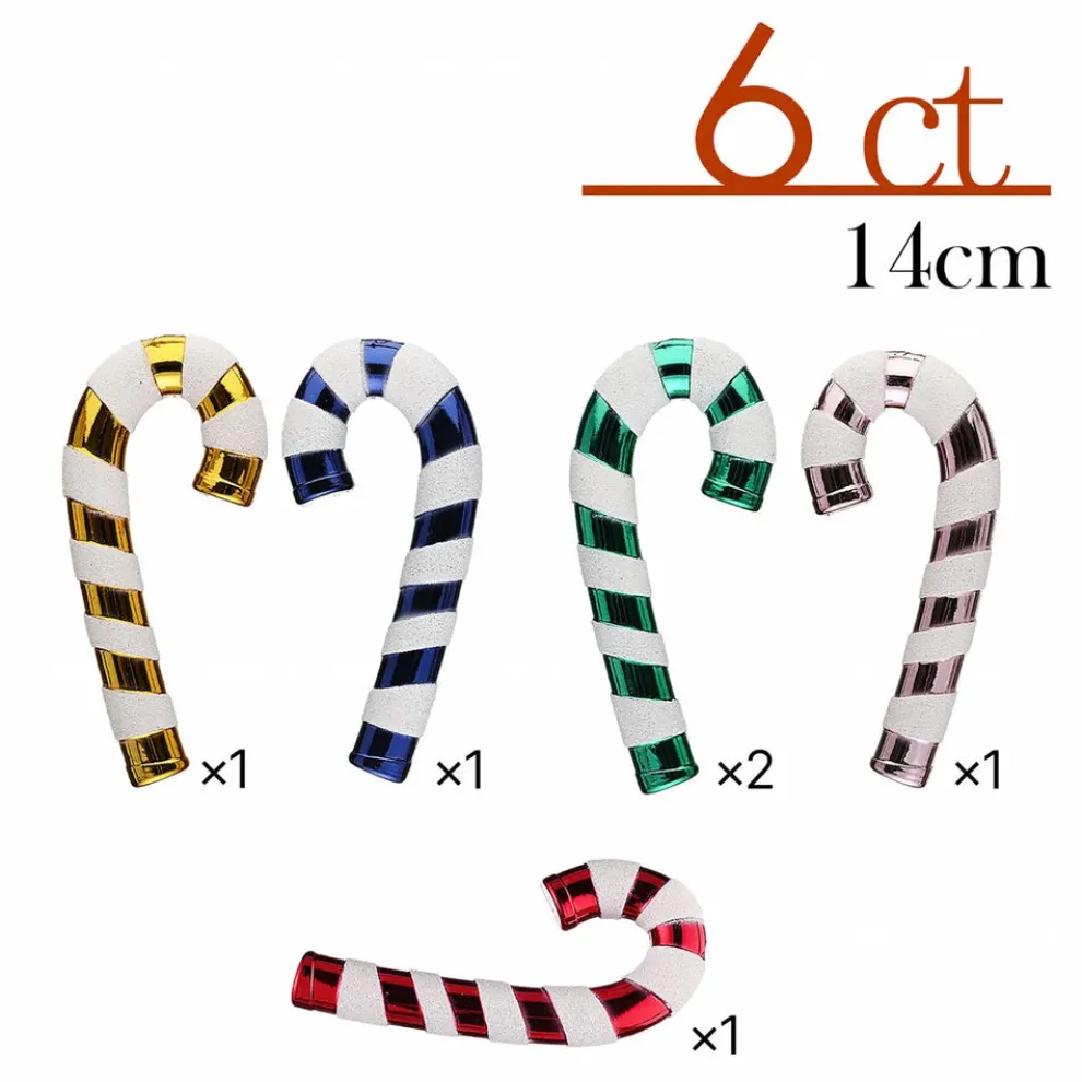 Karaca New Year Christmas Candy Stick Tree Decoration Set, 6 Piece, 14cm, Multi