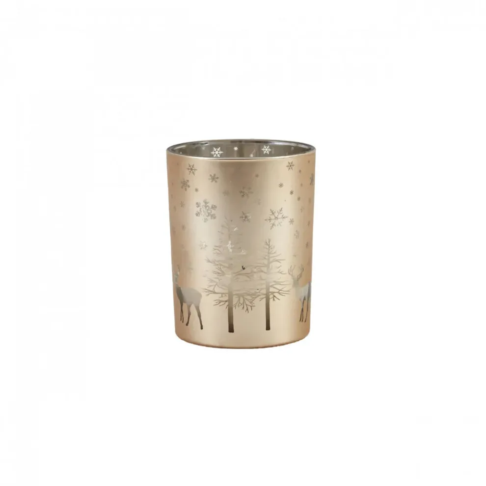 Karaca New Year Christmas Helena Glass Candle Holder, 10cmx12.5cm, Gold