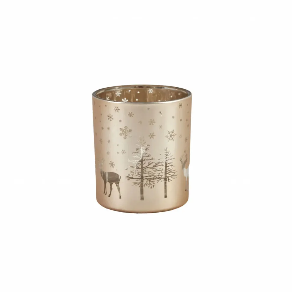 Karaca New Year Christmas Helena Glass Candle Holder, 7cmx7.8cm, Gold