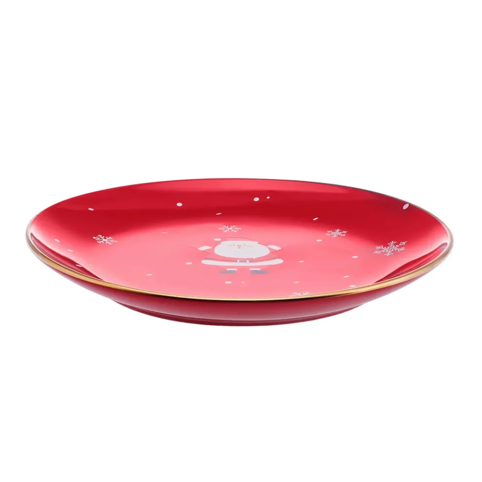 Karaca New Year Christmas New Generation Bone Golden Line Dinner Plate, 27cm, Red Multi