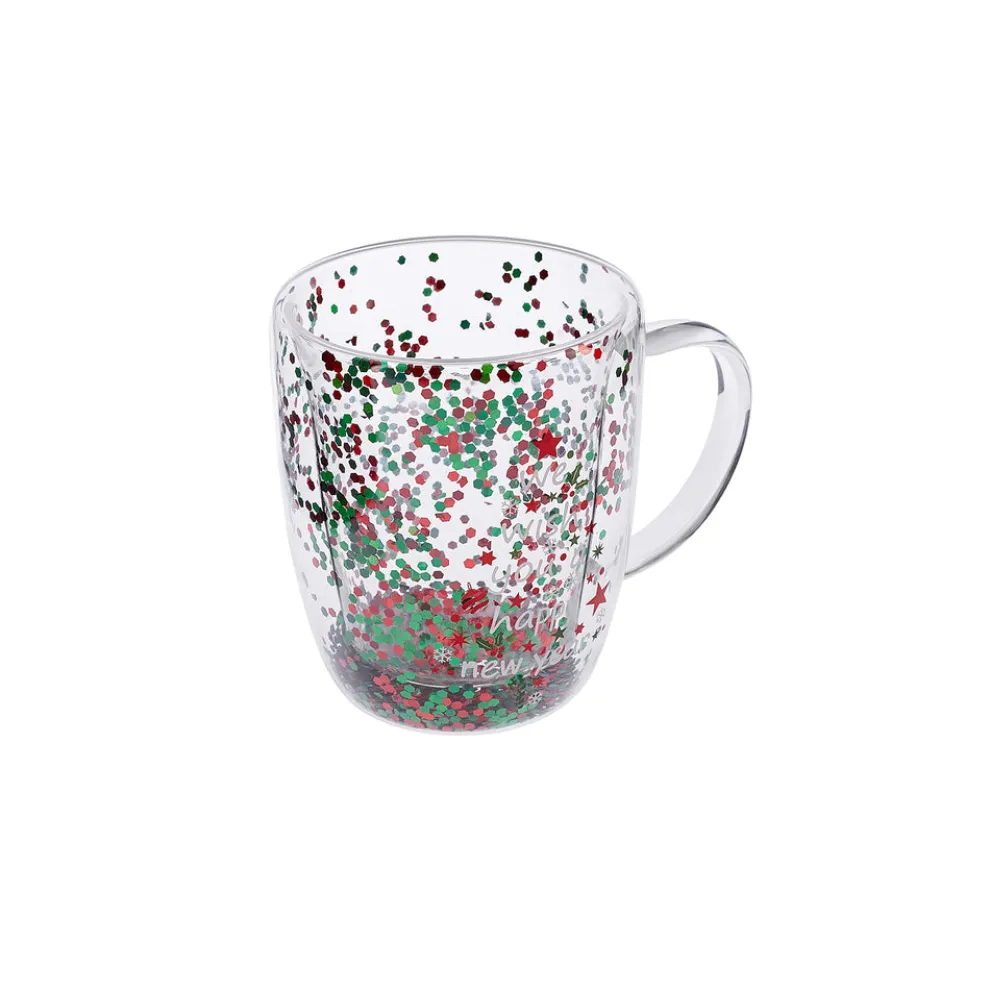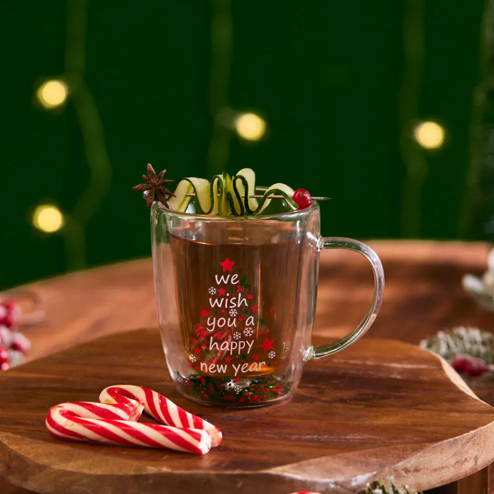 Karaca New Year Christmas Pia Double Trimmed Tree Mug, 350ml, Clear
