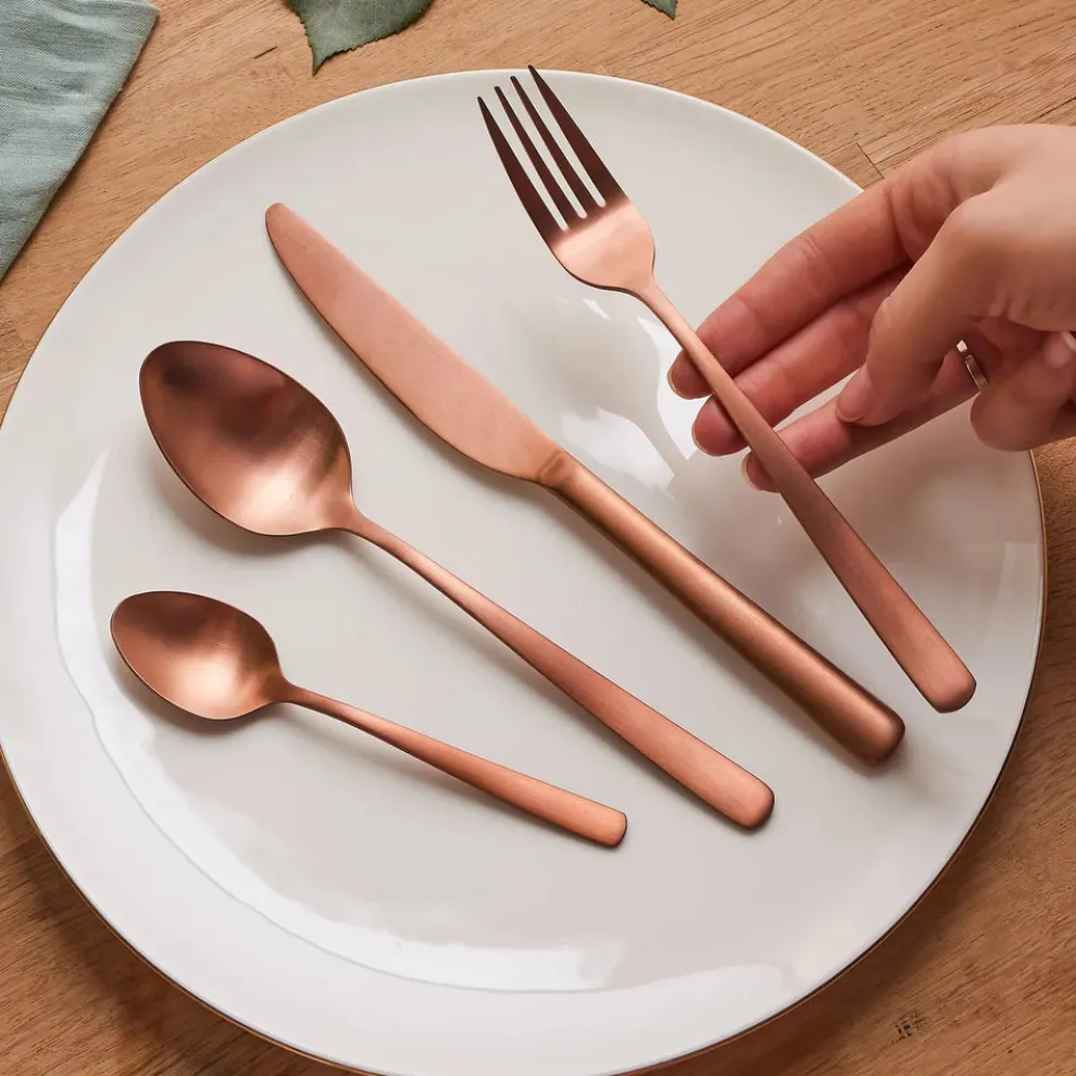 Karaca Nimbus 16 Piece Stainless Steel Cutlery Set for 4 People, Rose Gold