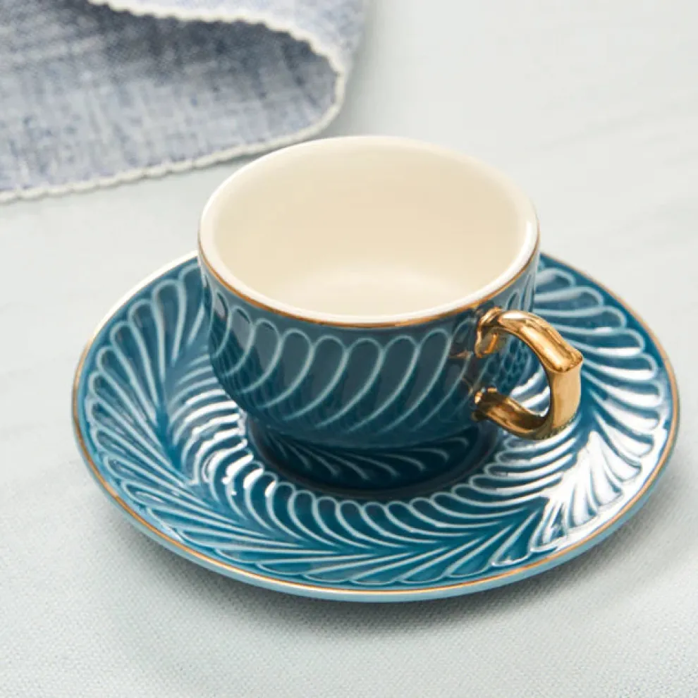 Karaca Olympian 12-Piece Porcelain Turkish Coffee Cup Set for 6 People, 90ml, Blue