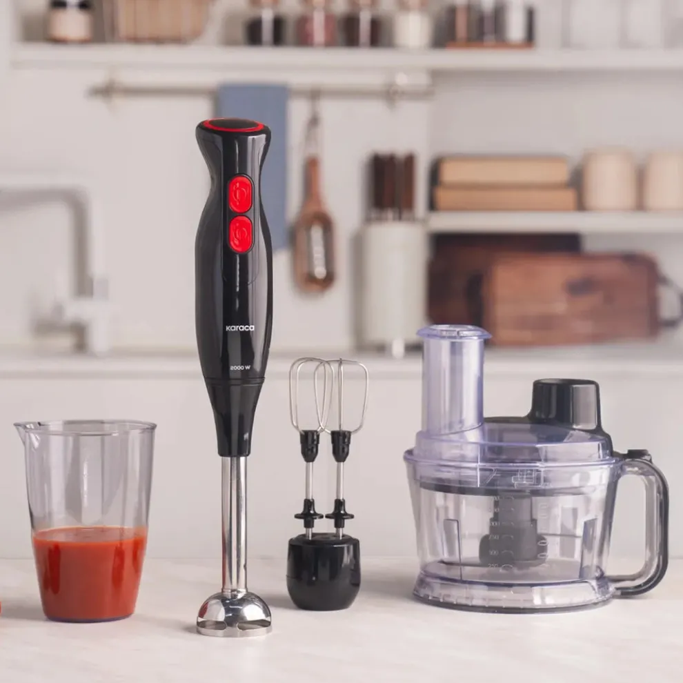 The food processor used in many stages of food preparation is an effective product. Karaca Pro Multimax, which aims to bring practicality to your life, allows you to perform the process quickly in a short time thanks to its 2000 Watt engine. The features of the product can be listed as follows: