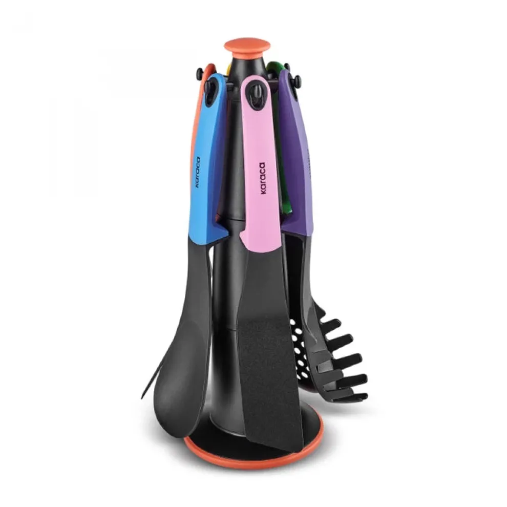 Karaca Rainbow 7-Piece Kitchen Utensil Set with Stand, Multi