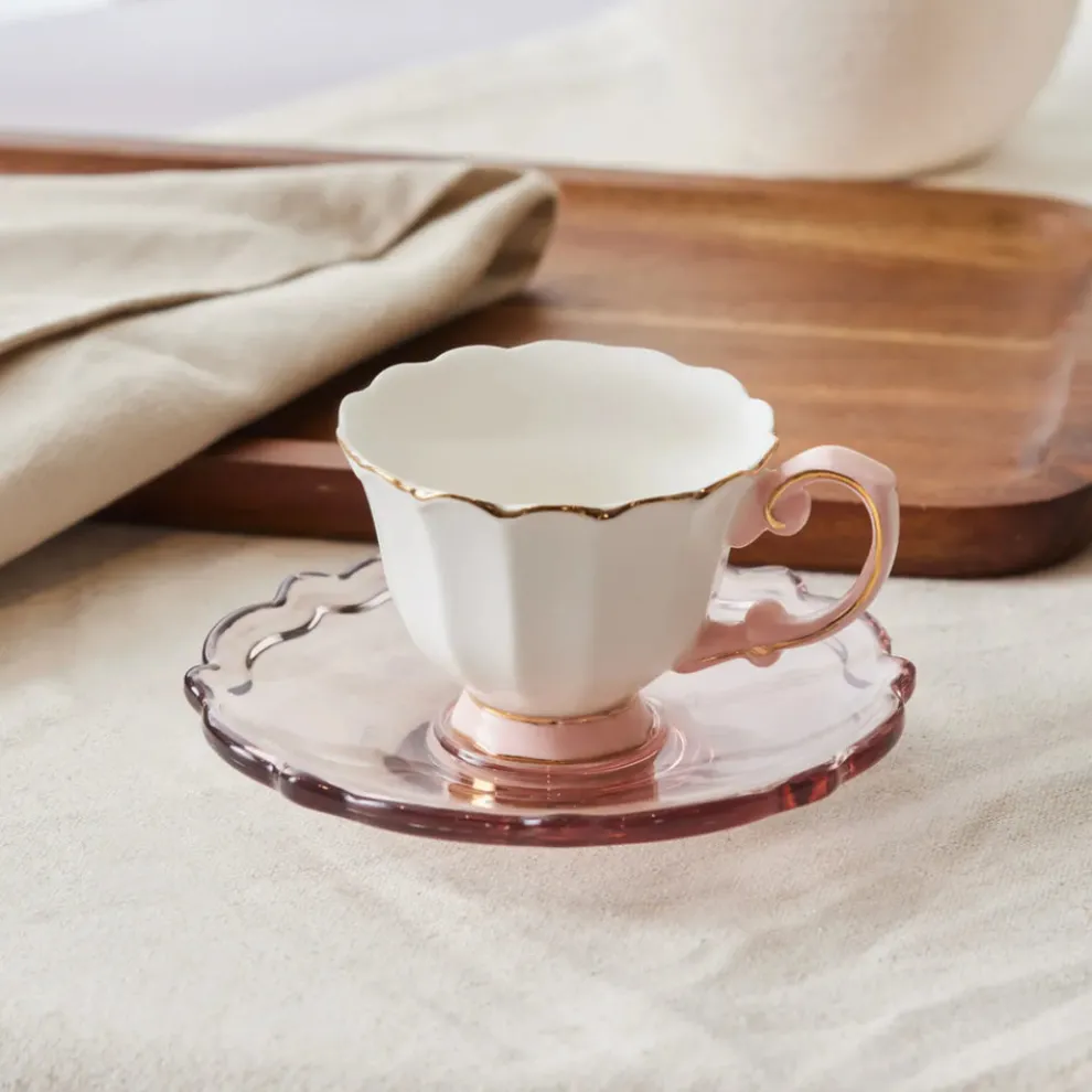 Karaca Samo 4-Piece Bone China Acrylic Plated Espresso Turkish Coffee Cup Set for 2 People, 90ml, Pink Multi