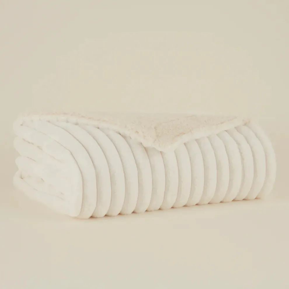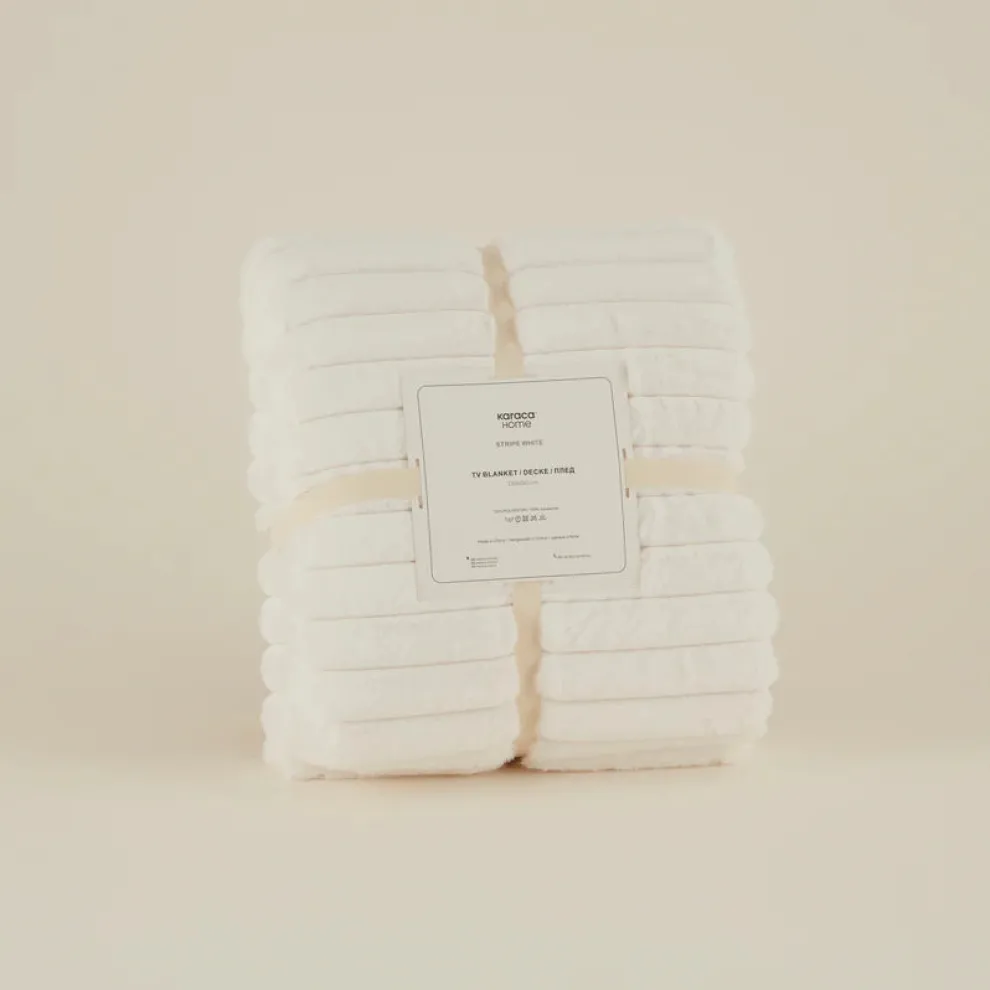 Karaca Stripe Sherpa Blanket, 130x150cm, White