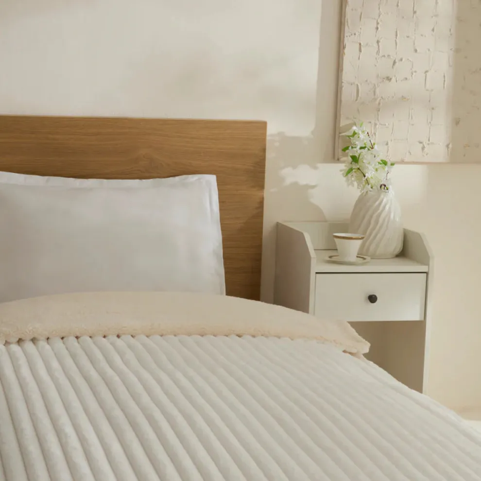 Karaca Stripe Sherpa Blanket, 150x200cm, White