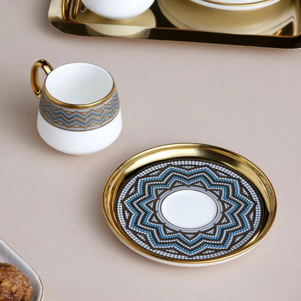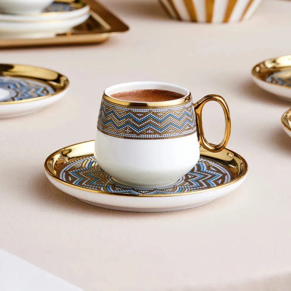 Karaca Suadiye 12-Piece Porcelain Espresso Turkish Coffee Cup for 6 People, 90ml, Blue