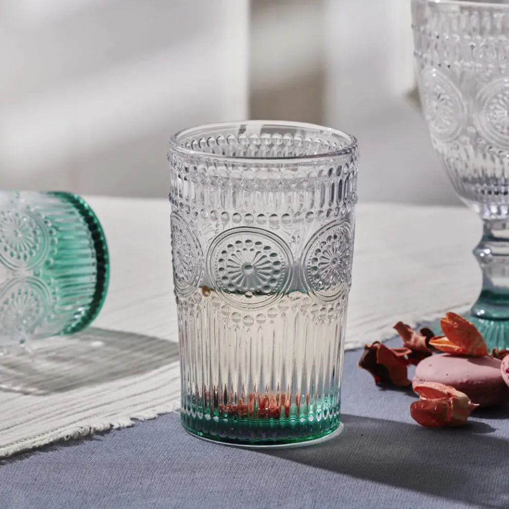 Karaca Sunflower Glass Highball Glass, 332ml, Transparent Green
