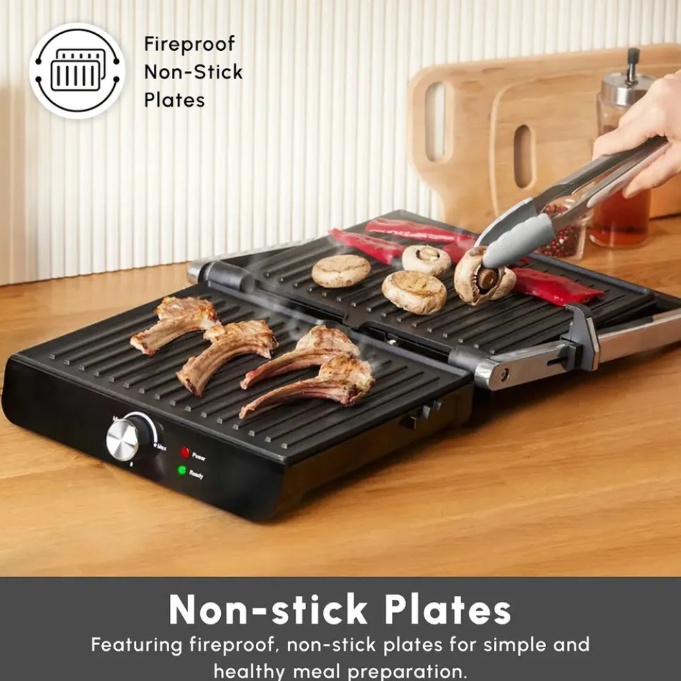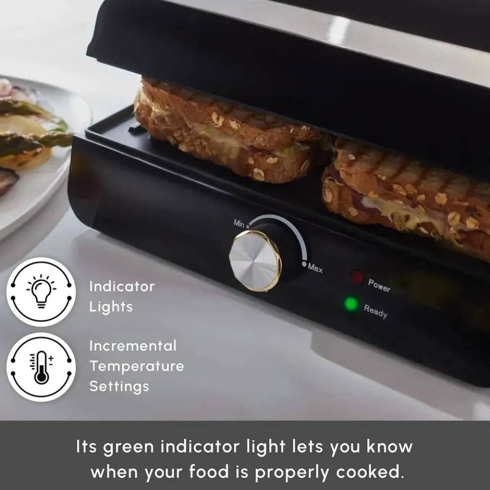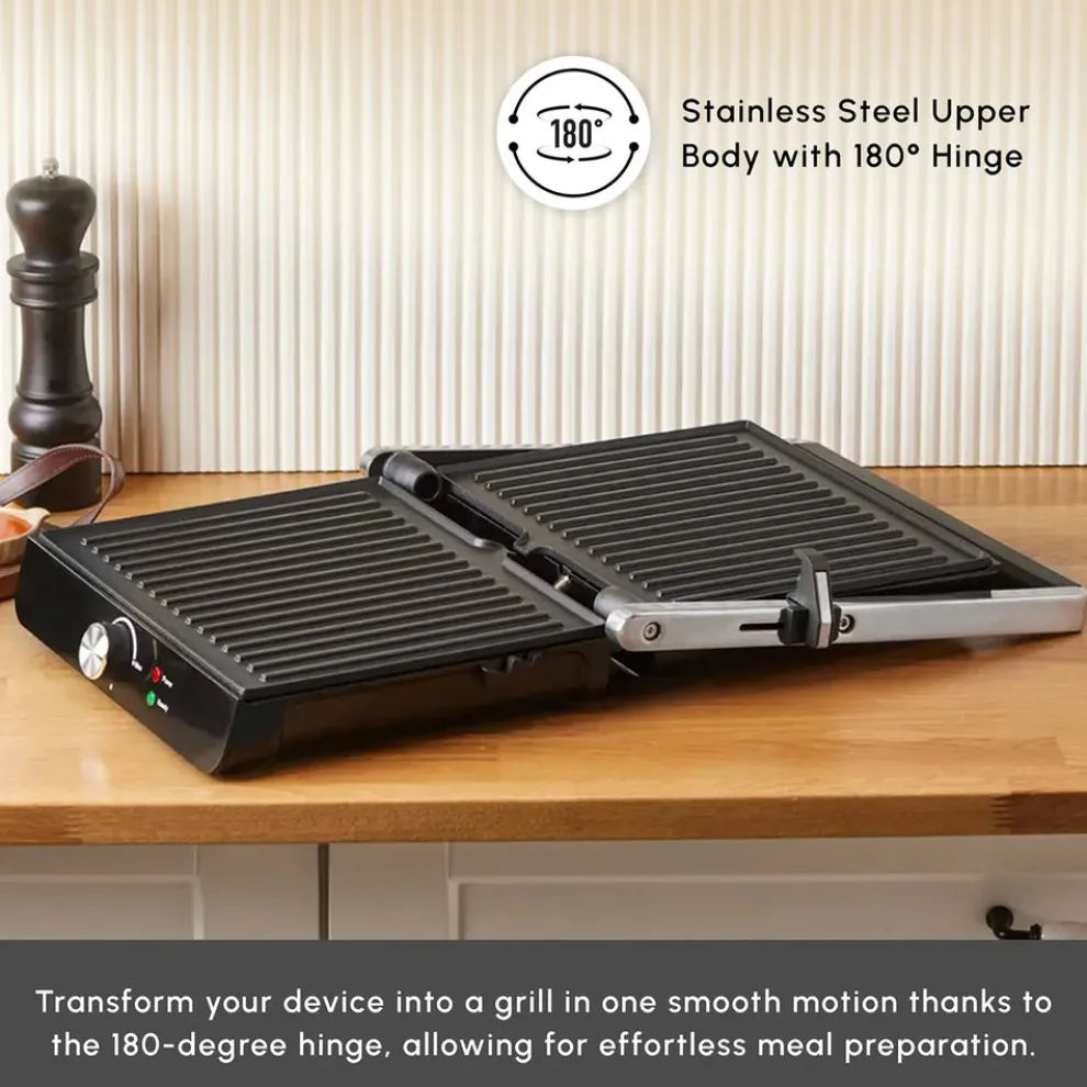 Experience versatile cooking with this grill and sandwich toaster, perfect for a wide range of culinary creations from crispy sandwiches to succulent grilled meats.