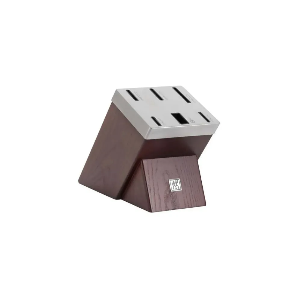 But it’s not just the properties of the ZWILLING SharpBlock that are impressive. The brown block made from ash wood is a real eye-catcher in its own right and makes a tasteful addition to any kitchen with its elegant design.